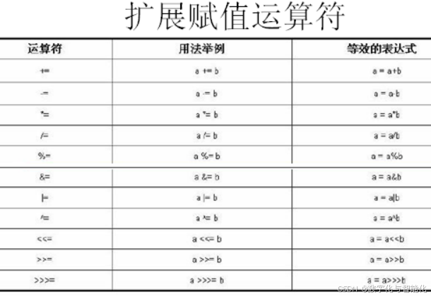 赋值运算符: = 扩展赋值运算符:+=,―=,*=,/=