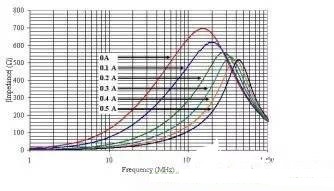 让我们首先来看一下阻抗值同为 600ohm@100MHz 但尺寸大小不同的磁珠在不同偏置电流电流和工作频率下的特性。