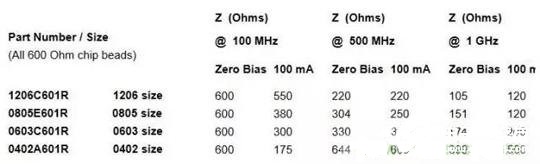 对于用于电源线磁珠尺寸,像我们前面讲到的,在满足排版空间设计要求情况下,要尽量选用大尺寸的磁珠。