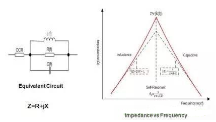 磁珠(Ferritebead)的等效电路是一个 DCR 电阻串联一个电感并联一个电容和一个电阻。DCR 是一个恒定值,但后面三个元件都是频率的函数,也就是说它们的感抗,容抗和阻抗会随着频率的变化而变化,当然它们阻值,感值和容值都非常小。