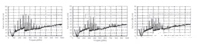 下面是上述三种情况对应的 EMI 测试结果。结果是磁珠 A 和磁珠 B 都会对 EMI 噪声产生很大的衰减。磁珠 A 在整个 EMI 频谱范围内的衰减要稍好于磁珠 B。
