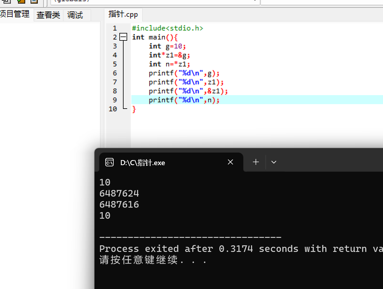 会存储同样要会取指针存储的地址的值:int n=*z1; 这样就将g的值赋给了n。