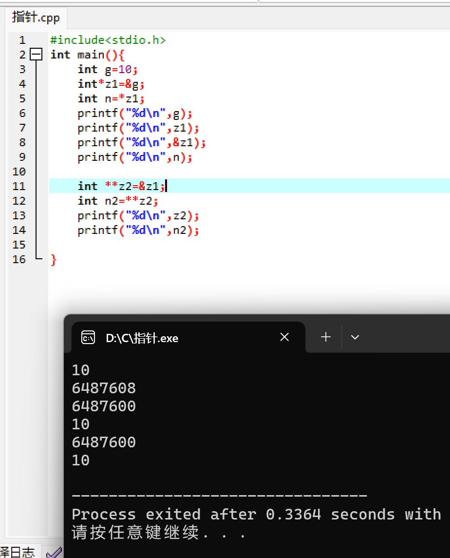 如图,通过输出的可以看出,可以通过**z2来访问g的值,并且z2所存储的值是z1的地址。