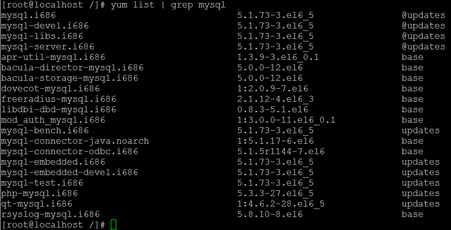 首先,我们通过命令:yum list | grep mysql来查看yum上提供的数据库可下载版本。