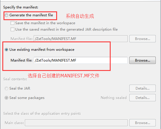 *Use existing mainfest from workspace:这是可以选择我们自定义的.MF文件,格式如上所写,引用了第三方包时选用。