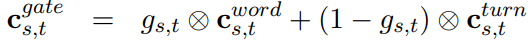 本文使用soft-gated copy机制,从对话历史中提取词,计算方式为