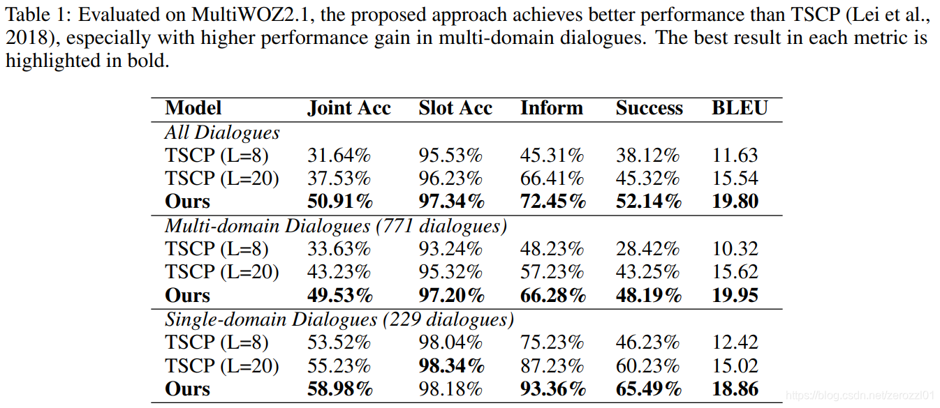 对于每轮对话,将预测的对话状态和真实的对话状态进行比较,当且仅当对话状态中所有的(domain,slot,value)预测正确时,才认为对话状态预测正确。