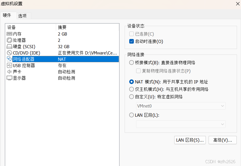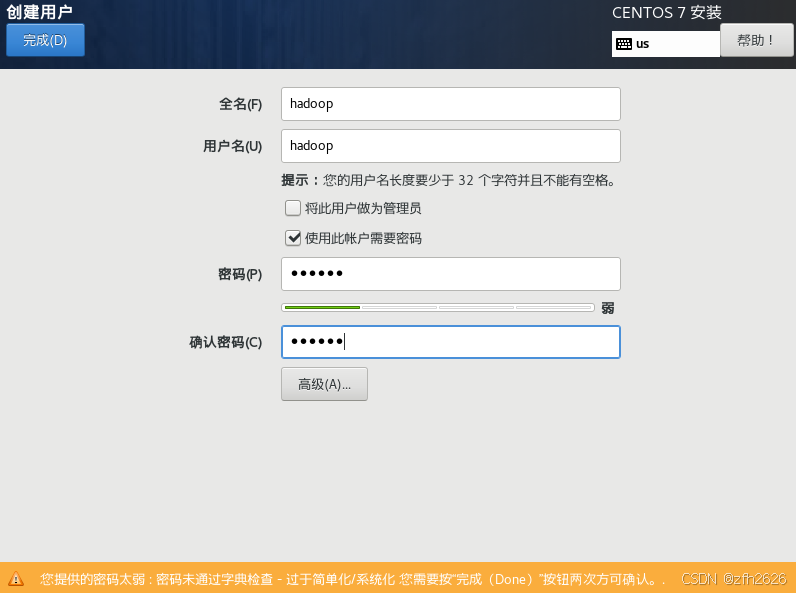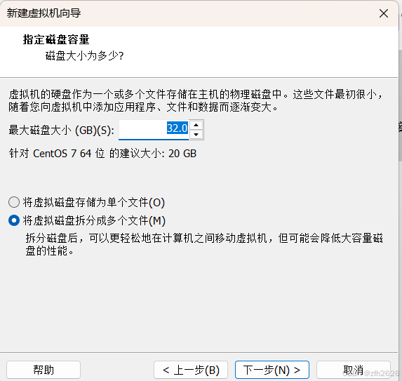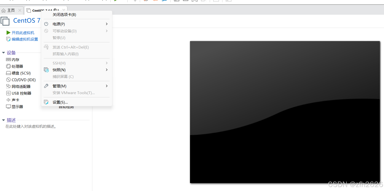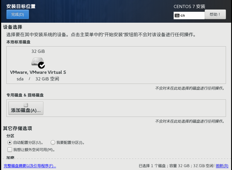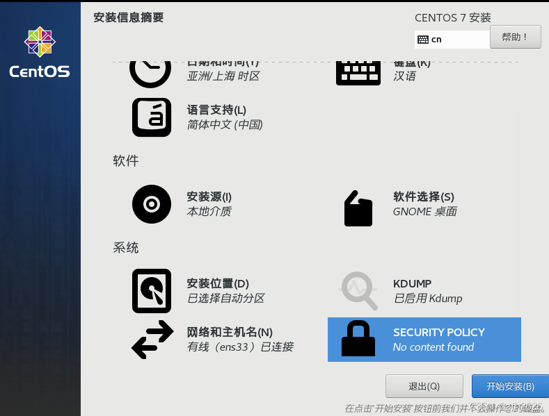 1.打开VMware,点击创建新的虚拟机 2.选择典型(推荐),点击下一步 3.选择稍后安装系统,点击下一步,系统镜像等到框架创建完成之后再安装 4.选项默认的就可以,直接点击下一步 5.虚拟机名称中名字填写无限制,可以自己更改,点击位置后面的浏览选项,可以选择虚拟机安装的位置,我这里安装在了D盘,你可以自己选择安装的位置 6.此处磁盘大小可以根据需求自己选择,我这里增加到了32.0,选择完之后点击下一步 7.点击完成,虚拟机的基本框架完成创建 8.右键点击上方刚建立完的虚拟机图标,点击出现的设置选项 9.此处内存可以根据自己电脑情况自己添加(添加后的内存必须是4的倍数) 10.处理器数量和内核数量根据自己的电脑配置和场景需求自己更改配置,我这里增加了一个处理器数量 11.CD/DVD(IDE)处连接选择使用ISO映像文件,点击浏览,查找下载好的镜像文件,我这里下载的是阿里云镜像站的CentOS-7-x86_64-DVD-2009.iso镜像文件 12.网络适配器选择NAT模式 13.剩下的设置不用更改,直接点击页面下方的确认,然后点击开启此虚拟机 14.点击页面,然后直接回车 15.等待开启完成 16.开机完成后会出现此页面,页面默认的是英文,新手可以下拉到最底部找到中文,然后点击继续 17.此处选择上海时区,点击完成 18.软件选择的基本环境可以使用默认的最小安装,也可以选择下面的GNOME桌面,选择好后点击完成 19.此处若没有特定需求,默认的就可以,点击完成 20.打开页面上的以太网开关,下面的主机名可以自行更改,此处我将用户名改为了master,然后点击完成 21.其余选项无需更改,点击开始安装 22.点击root密码选项,可以在其中设置root用户的密码,点击完成,root密码设置完成,然后点击创建用户,输入用户名和密码,点击完成后普通用户创建完成,最后等待软件包安装完成 23.完成后点击重启 24.点击未接受许可证旁的选项,勾选我同意许可协议,点击完成,然后点击完成配置 25.输入密码,进入桌面,一直点击前进,跳过系统引导,系统创建完成