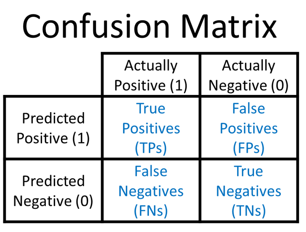 如上图所示,列表示 A c t u a l l y P o s i t i v e a n d A c t u a l l y N e g a t i v e \rm{}Actually~Positive~ and~Actually ~Negative Actually Positive and Actually Negative指的是数据集中的真实标签( g r o u n d t r u t h l a b e l s \rm{ground~truth~labels} ground truth labels),行表示 A c t u a l l y P o s i t i v e a n d A c t u a l l y N e g a t i v e \rm{}Actually~ Positive~ and ~Actually~Negative Actually Positive and Actually Negative,指的是模型预测的结果,即模型认为标签是什么。