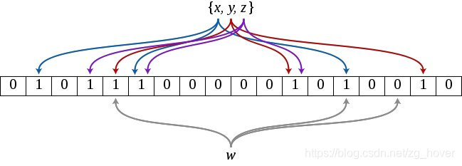 - 只有对应的bit位上都是1时,才认为这个元素在集合内。