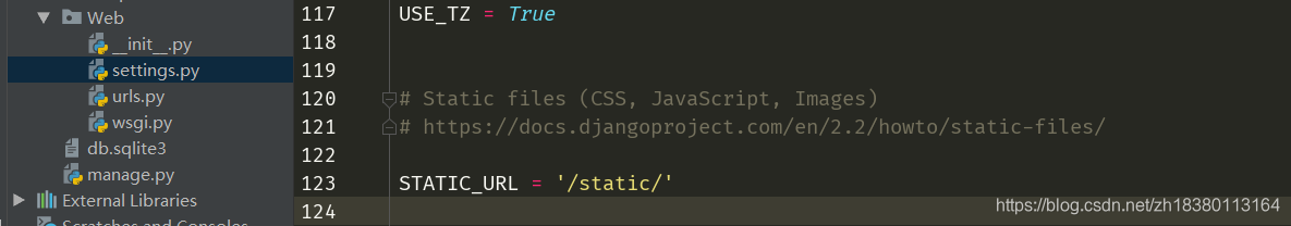 ⑵确保在Settings.py中设置了STATIC_URL:创建工程时自动添加,默认值为'/static/'