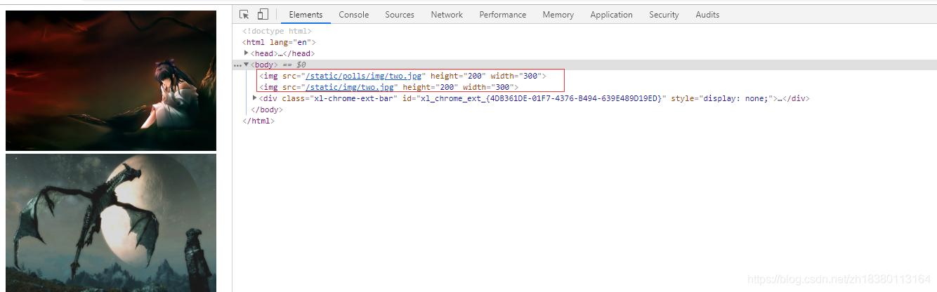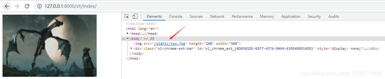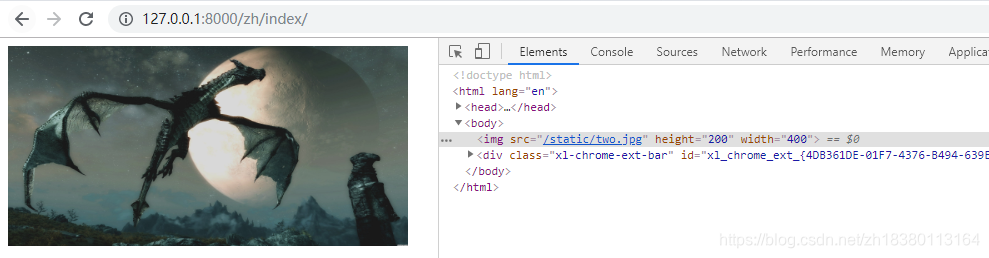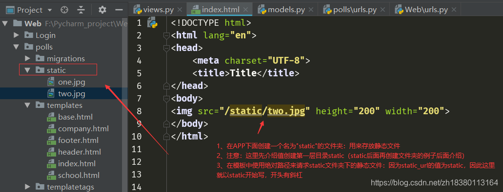 ⑴编辑模板:在app下和项目根目录下的static文件夹下都有一个同名的静态文件two.jpg