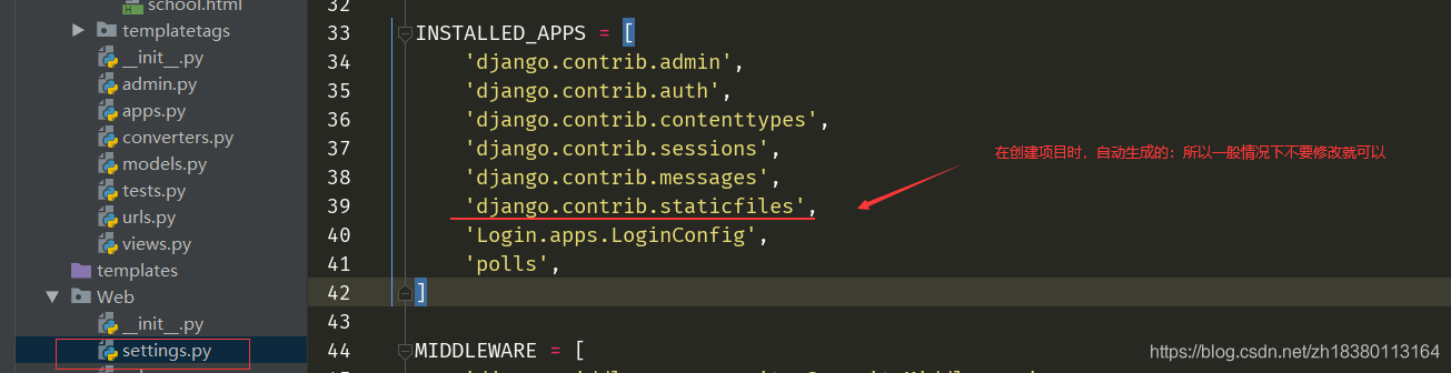 1、这个的具体作用目前还不知道是为什么,只是感觉是为了将静态文件与app等进行一种映射吧。这里在创建项目时会自动添加,只要我们不要没事找事把它删除或修改了就可以了