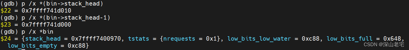 下面让我们把stack_head, stack_head-1指向的内存的值打出来。