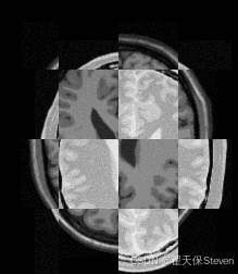 - 原理:将固定图像与浮动图像按棋盘格模式交替拼接(如 2x2 像素块);