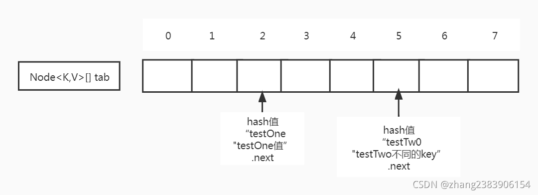 5、首次put不同key值但index下标相等:map.put("testThree","testThree的值”)