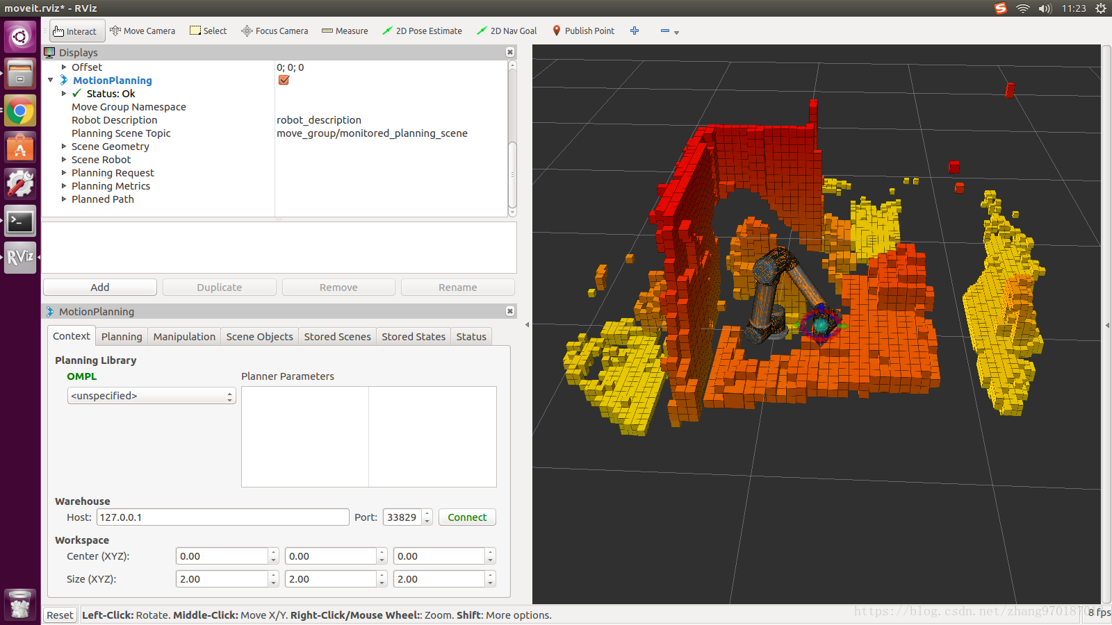 因为使用了点云图像,所以要对moveit的octomap进行配置: