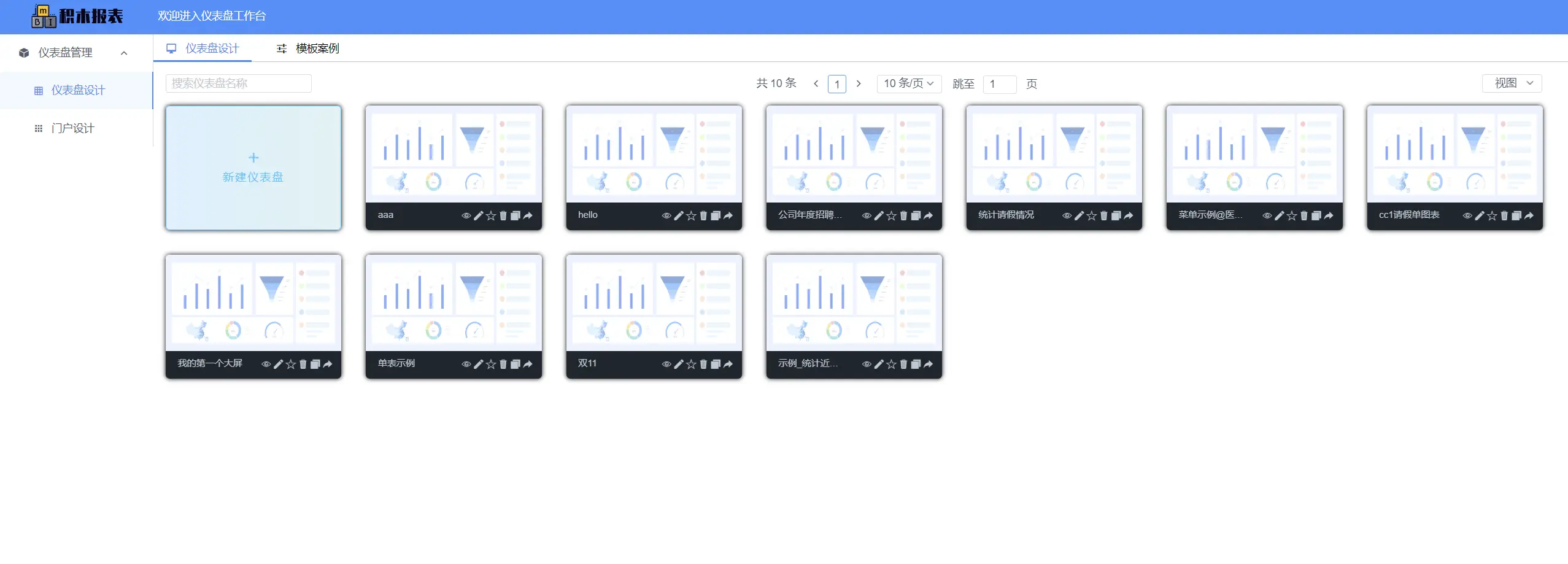 积木报表JimuReport,是一款免费的数据可视化报表,含报表、仪表盘和大屏设计,像搭建积木一样完全在线设计!功能涵盖:数据报表、打印设计、图表报表、门户设计、大屏设计等!