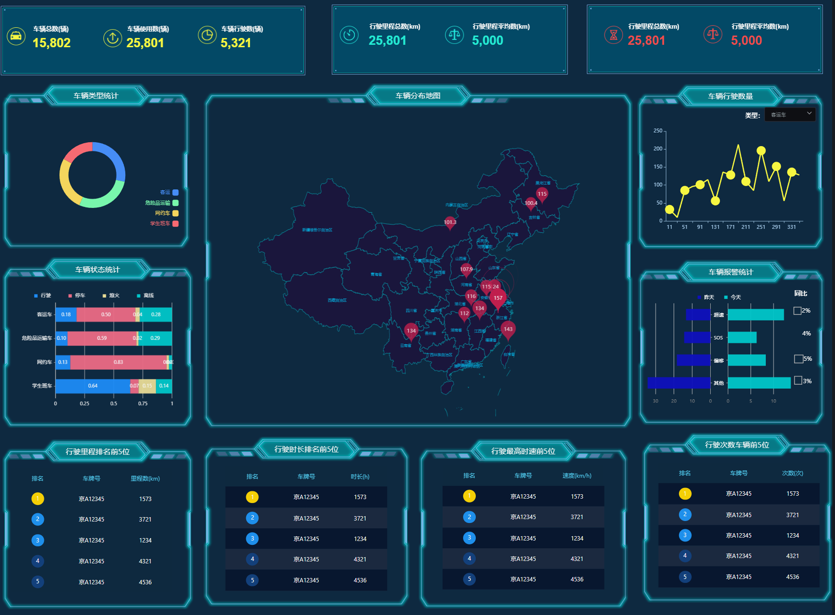 - 大屏设计器支持几十种图表样式,可自由拼接、组合,设计炫酷大屏