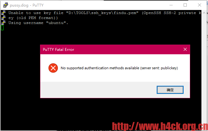 当使用putty登陆时,会提示这个错误,这是因为key的格式不兼容putty导致的,需要转换一下