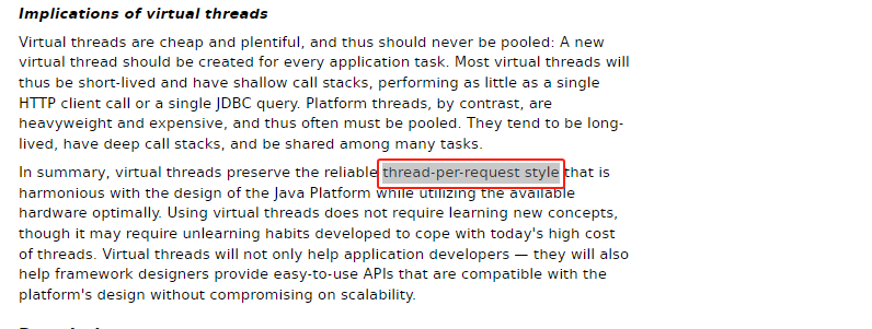 每个请求都创建一个虚拟线程,无需上下文切换 thread-per-request style