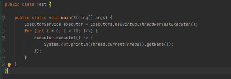 ExecutorService executor = Executors.newVirtualThreadPerTaskExecutor();