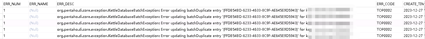 1、我们在平常写应用程序的时候,需要主动捕获异常或者错误,不然程序有可能异常退出。同样kettle 也支持异常或者错误处理,下图展示的是在批量插入数据的时候捕获异常,如唯一健冲突,死锁等,并将错误信息 保存到表里面,方便后续邮件预警和排查问题。