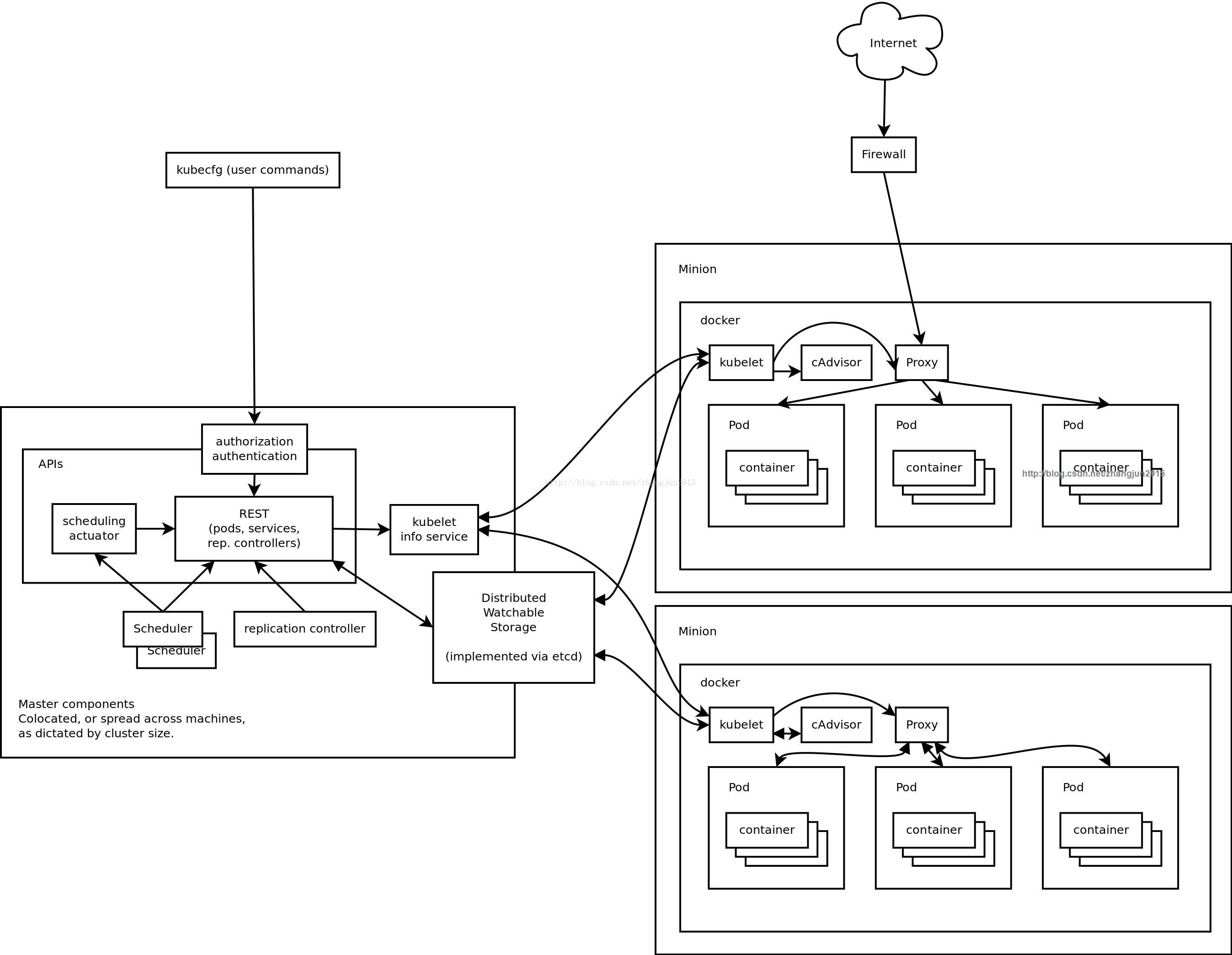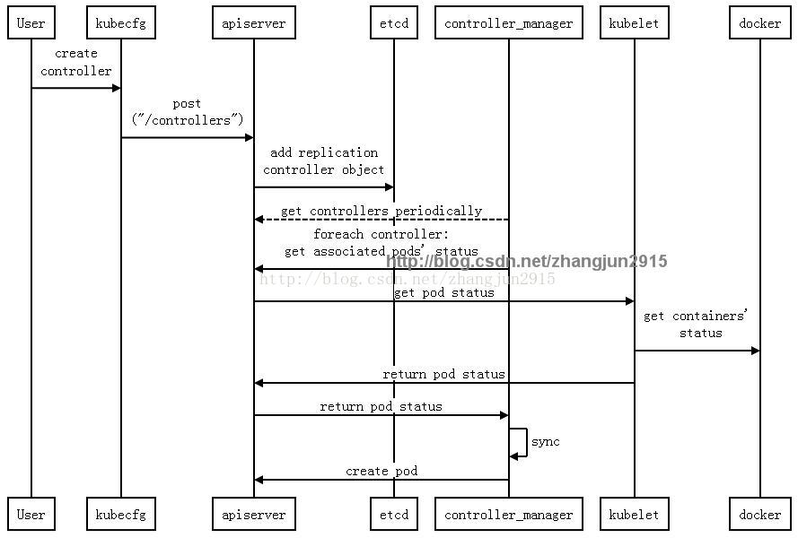 上文已经提到了Kubernetes中最基本的三个操作对象:pod, replicationController及service。下面分别从它们的对象创建出发,通过时序图来描述Kubernetes各个组件之间的交互及其工作流。