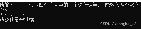 printf("请输入+,-,*,/四个符号中的一个进行运算,只能输入两个数字\n");