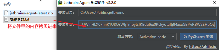 另一个文本文件中有安装参数指令,将其复制粘贴至安装参数框内,然后点击为Pycharm安装