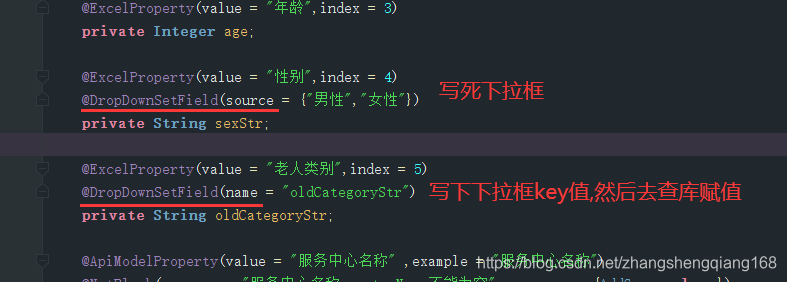 * 自定义注解标记导出excel的下拉数据集