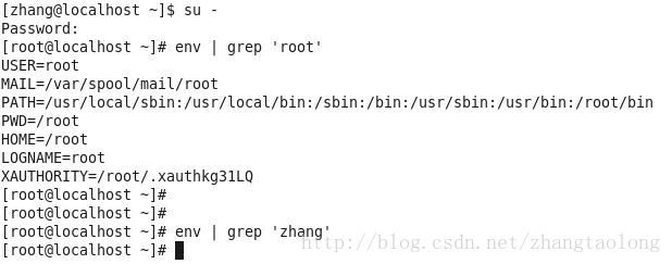 PATH,MAIL,PWD等值还是zhang这个用户的值。刚切换到root用户时,root用户的当前工作目录是zhang,也