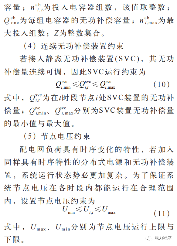 最优潮流计算是电网规划、优化运行的重要基础。首先建立了配电网全天有功损耗最小化的最优潮流计算模型;其次结合辐射型配电网潮流特点建立支路潮流约束,并考虑配电网中的可控单元,包括分布式电源和离散、连续无功补偿装置,建立其出力约束,该模型为非凸非线性模型;然后通过二阶锥松弛将该模型转化为包含整数变量的二阶锥规划模型。