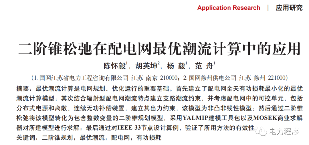 文章构建了配电网全天有功损耗最小化的最优潮流计算模型,考虑了辐射型网络、可控单元(如分布式电源和无功补偿装置)的影响,提出了一种非凸非线性模型,并通过二阶锥松弛转化为二阶锥规划问题。代码示例展示了在MATLAB中处理这一问题的过程,包括参数设置、变量定义以及约束条件的构建。