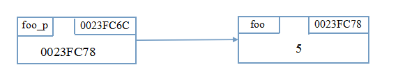 可以这样来理解指针:指针是一种特殊的语言机制,它存放的是其它变量的地址,并且可以通过解引用操作符*,来获取该地址的内容。这也造成了一种指向的关系,如上图 foo_p->foo。