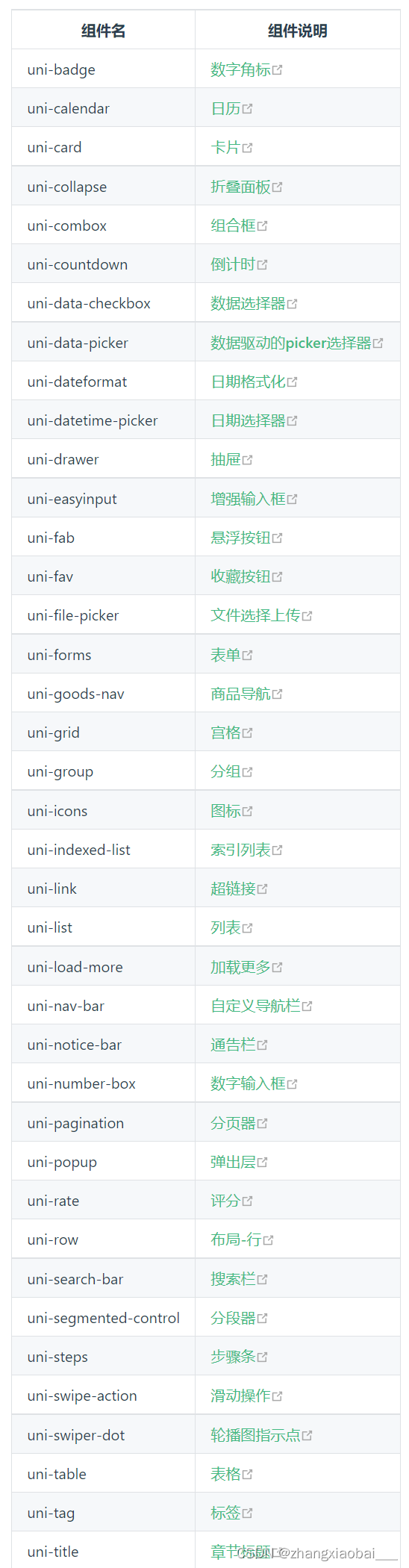 官方网址:组件使用的入门教程 | uni-app官网 ;路径:首页->组件->扩展组件,里面有大量封装好的组件,比较常用的有倒计时组件uni-countdown、轮播图组件uni-swiper-dot、弹框组件uni-popup等。