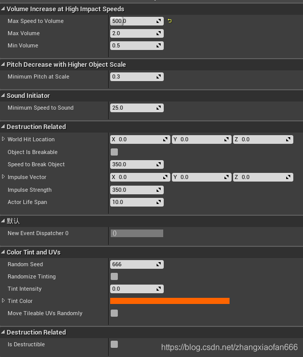 该Actor下有一个StaticMesh和AudioComponent,配置的参数: