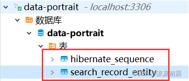 1》服务启动后,发现新建了两张表,hibernate会为我们自动生成一个名为HIBERNATE_SEQUENCE的序列表,用来记录search_record_entity表的主键信息