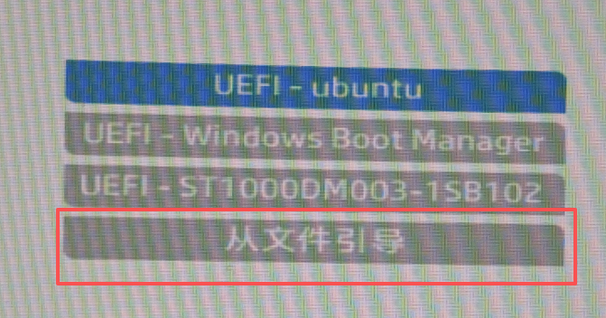 确保UEFI模式从u盘启动,我这里没有显示,可能是磁盘问题,所以选择“从文件启动”,看到有u盘选项,点击进入u盘/EFI/BOOT/,选择bootx64.efi文件,即可启动