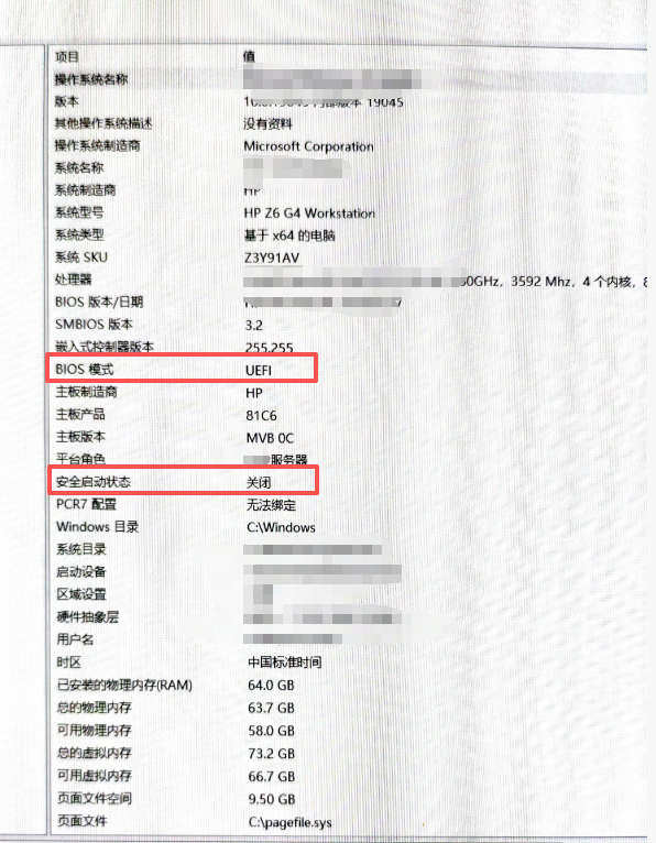 1、安装之前查看系统模式&查看是否开启了安全启动项: