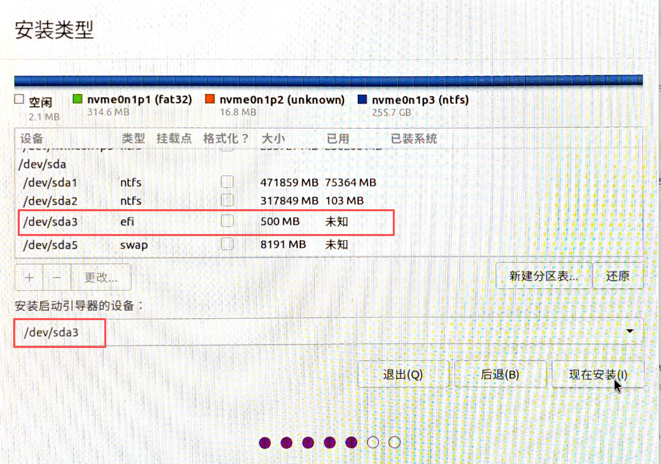 选择要安装的位置,点击+添加分区(efi可以安装在与win引导项不同的位置)