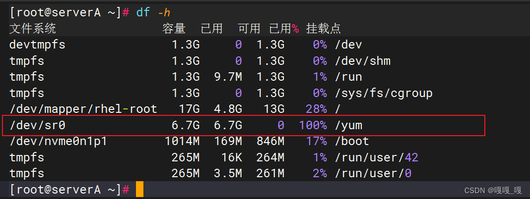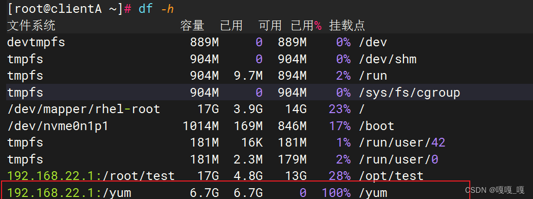 [root@clientA ~]# mount -t nfs 192.168.22.1:/yum /yum