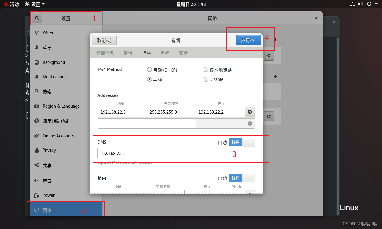 第一步:修改客户端的DNS将其指向192.168.22.1