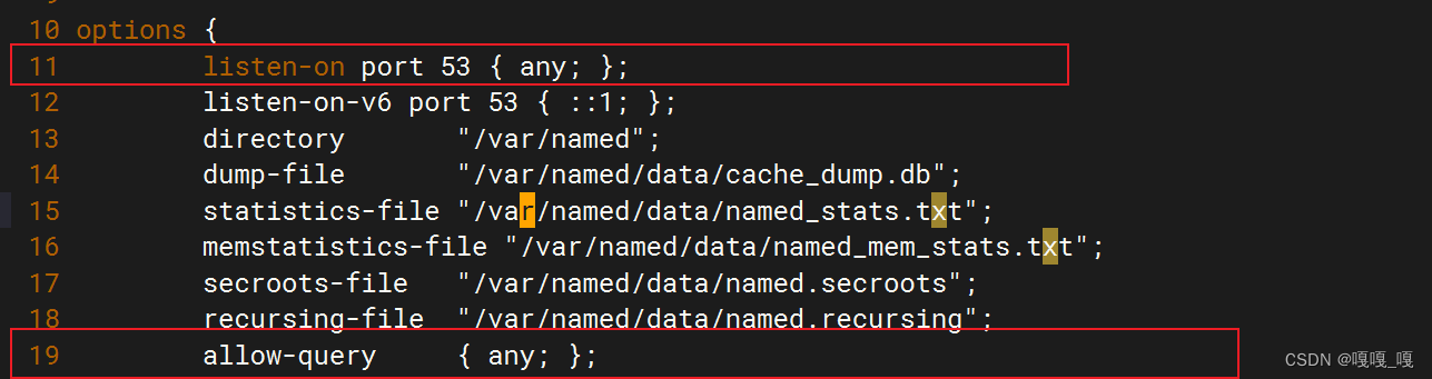 [root@serverA ~]# vim /etc/named.conf //编辑主配文件