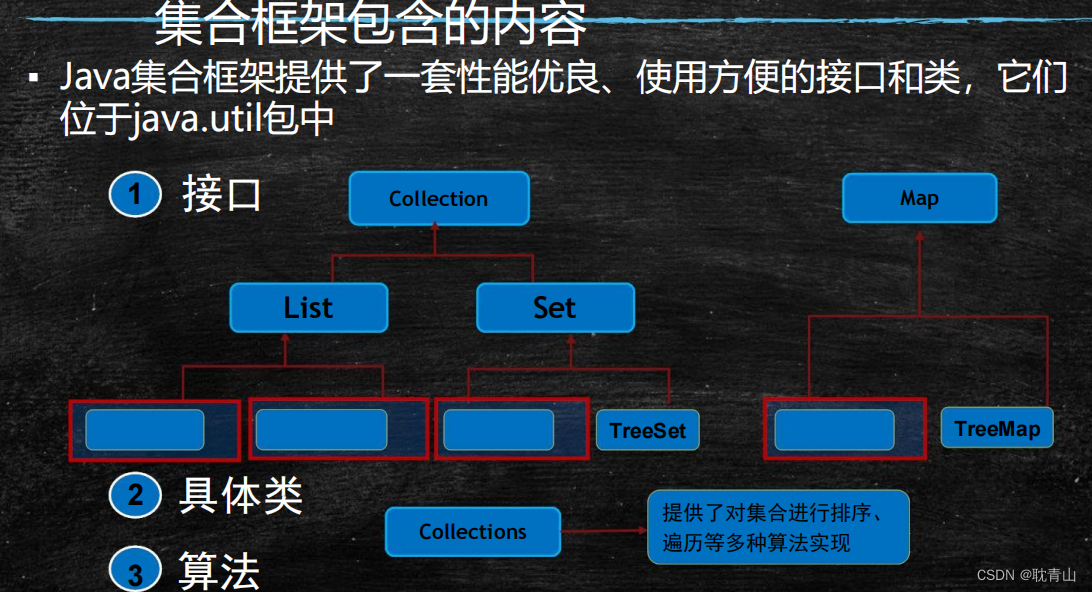 在集合框架中为java提供了一套完整的一套性能优良的方法方便的接口和使用的类,它们都统一在java.util这个包里面