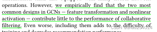 作者开门见山的指出:特征转换和非线性激活——对协同过滤的性能几乎没有贡献。这篇文章也就是对NGCF的模型进行了精简,所以最好先理解前者才更好的理解后者