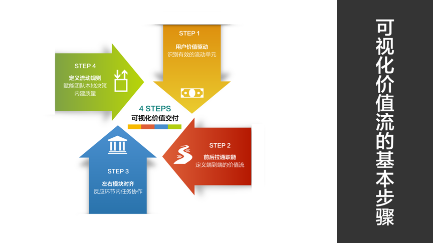 识别有效流动单元,前后职能拉通和左右模块对齐。这三个步骤让需求交付过程清晰可见,并即时暴露流动过程中的问题和瓶颈。