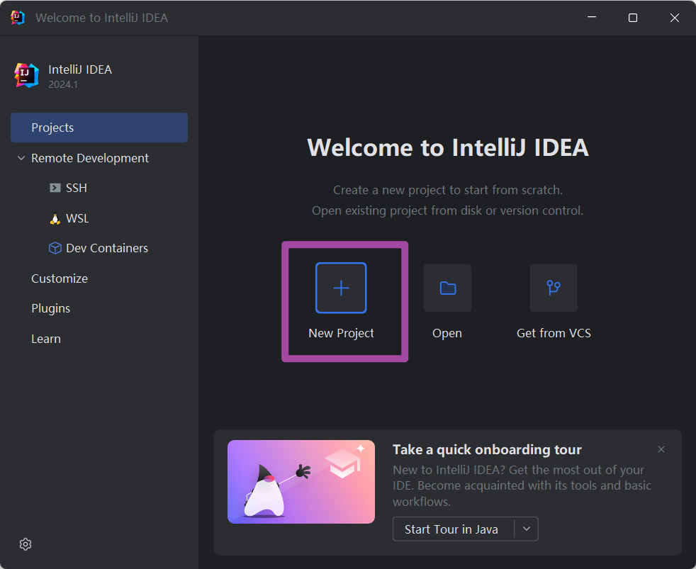 首先,打开我们安装好的IntelliJ IDEA软件。在这里,就以IntelliJ IDEA的2024.1版本为例来介绍,其他版本只要不是太久远的,具体操作方法其实也都一致。