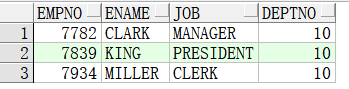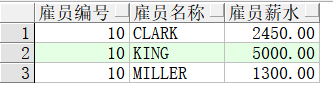 select e.deptno 雇员编号,e.ename 雇员名称, e.sal 雇员薪水 from emp e where e.deptno=10;
