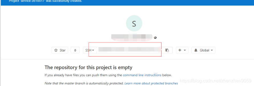 7.然后通过网页的方式登录gitlab服务,创建一个空的project,然后在如图所示的位置复制仓库地址,然后把这个地址填写到刚刚push的时候弹出的对话框中